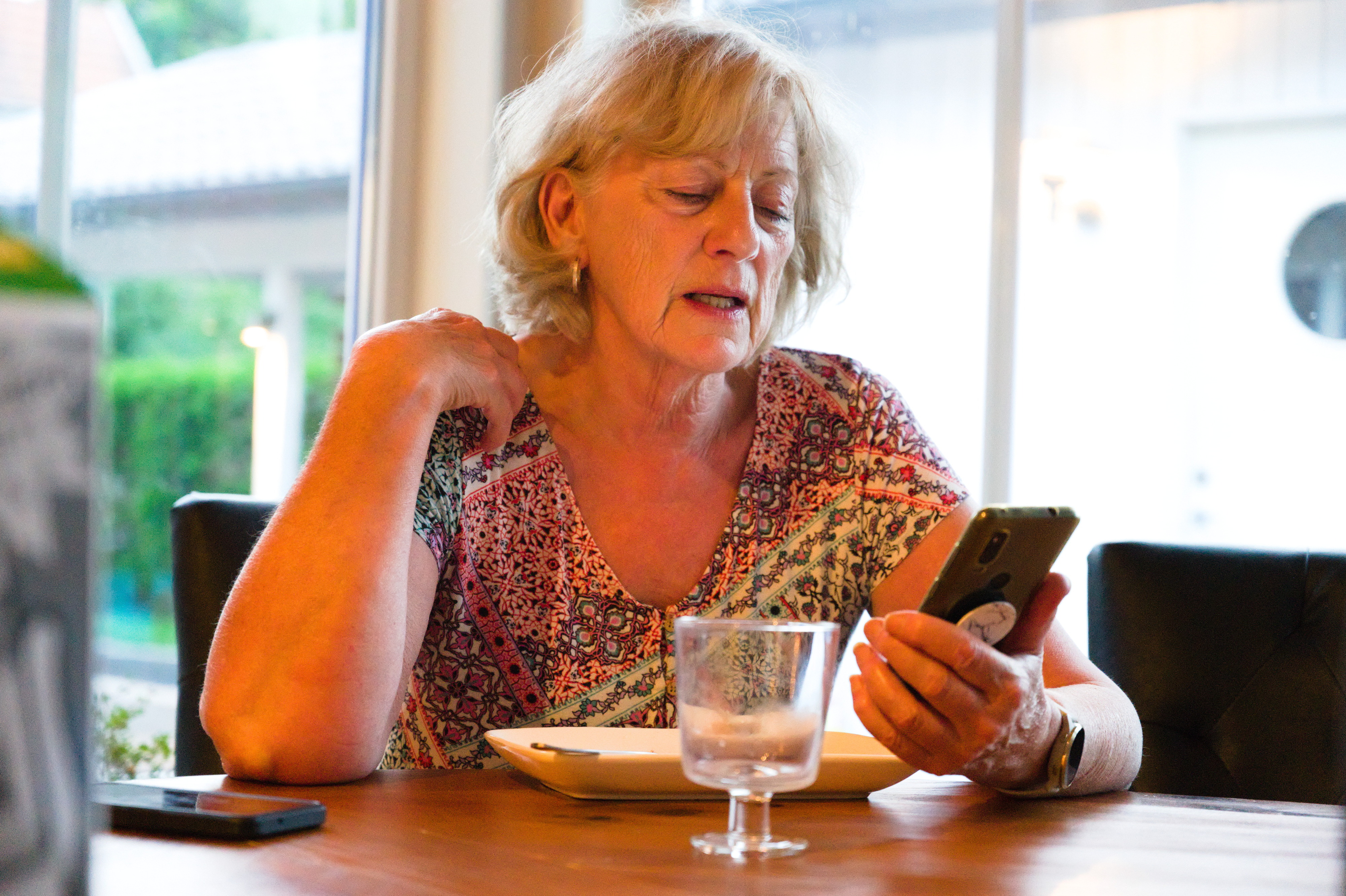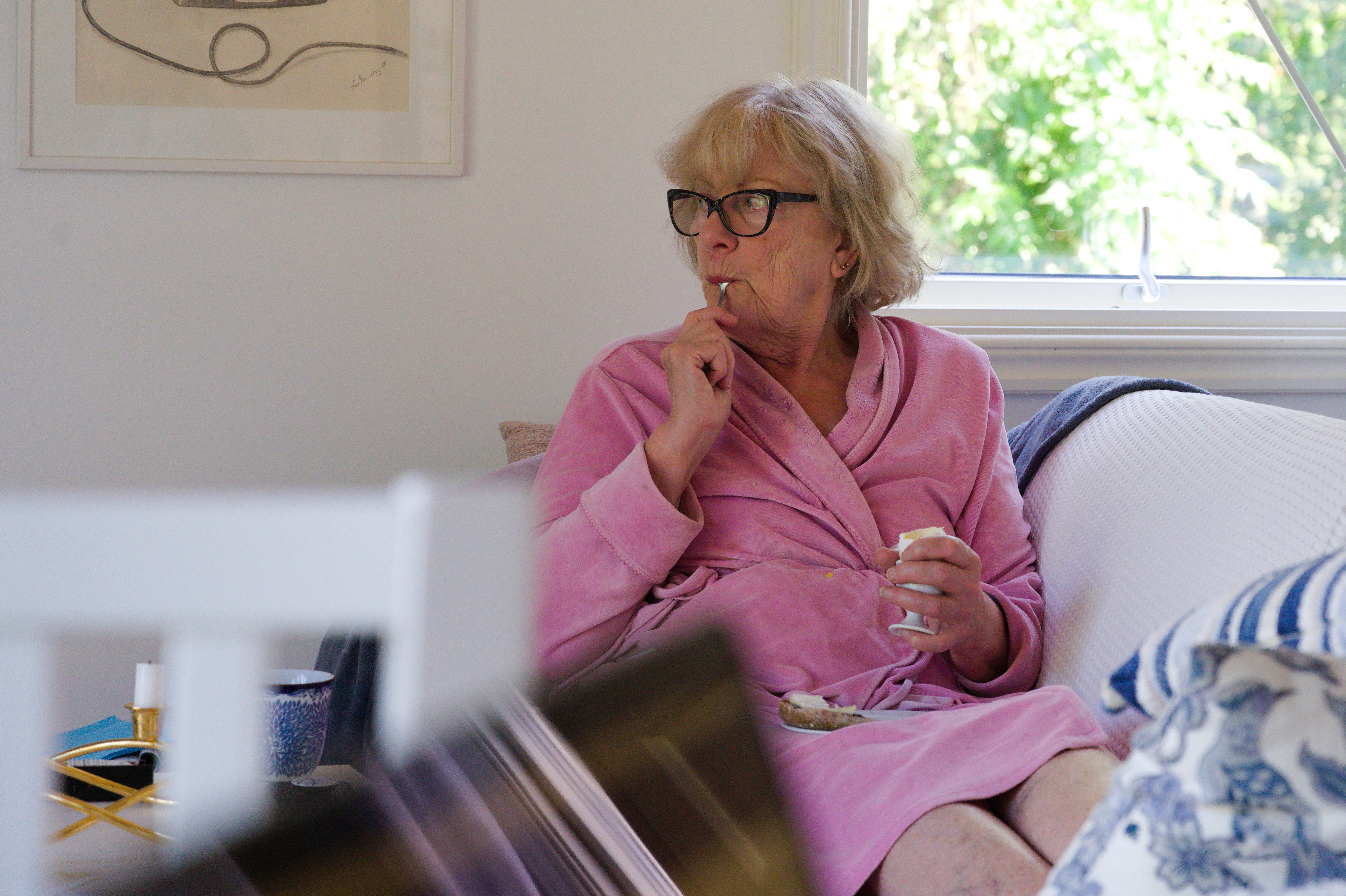Elise släpptes ut på terassen utan koppel för första gången. Hon valde att fira detta med att sitta och äta gräs.