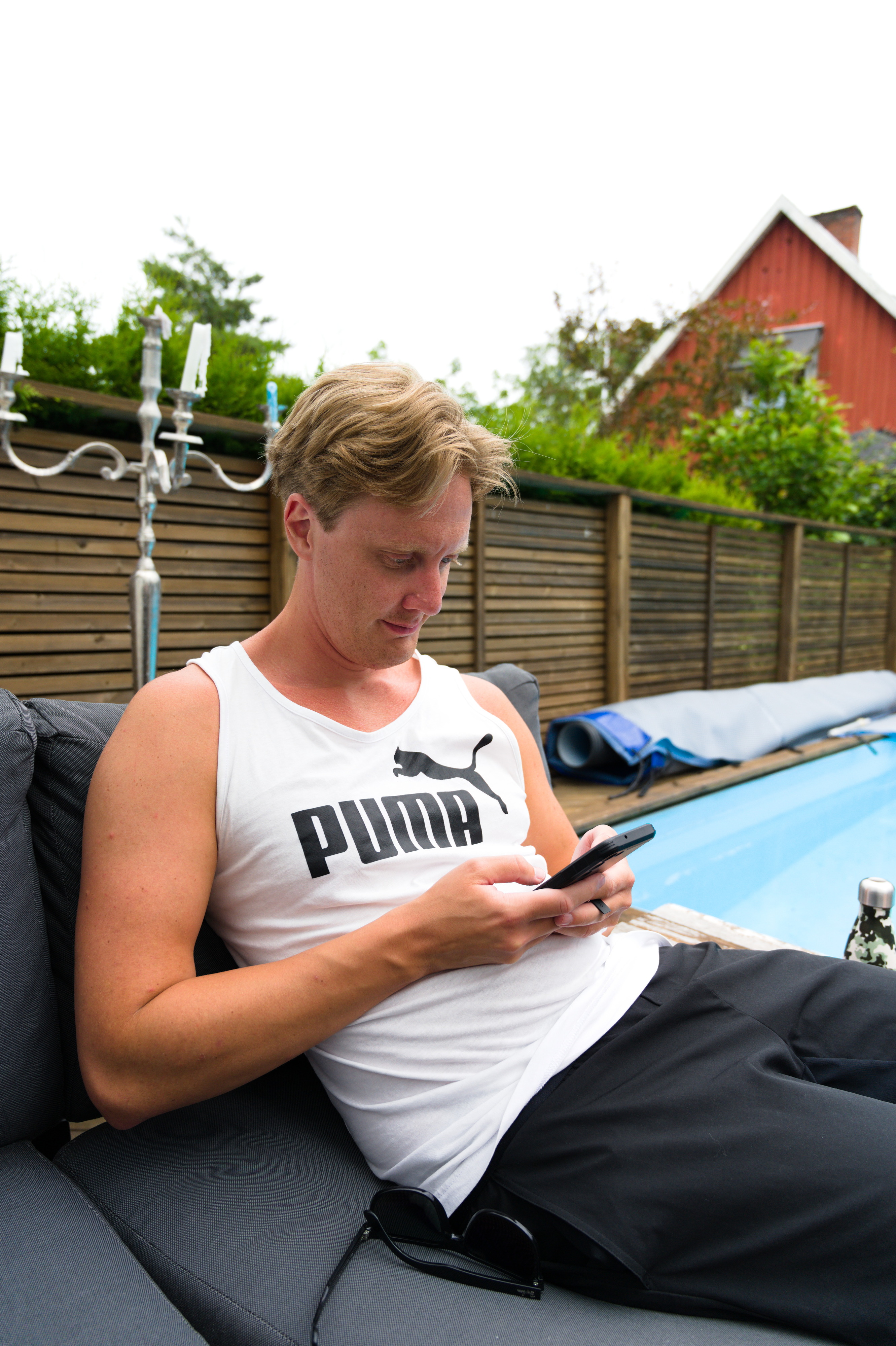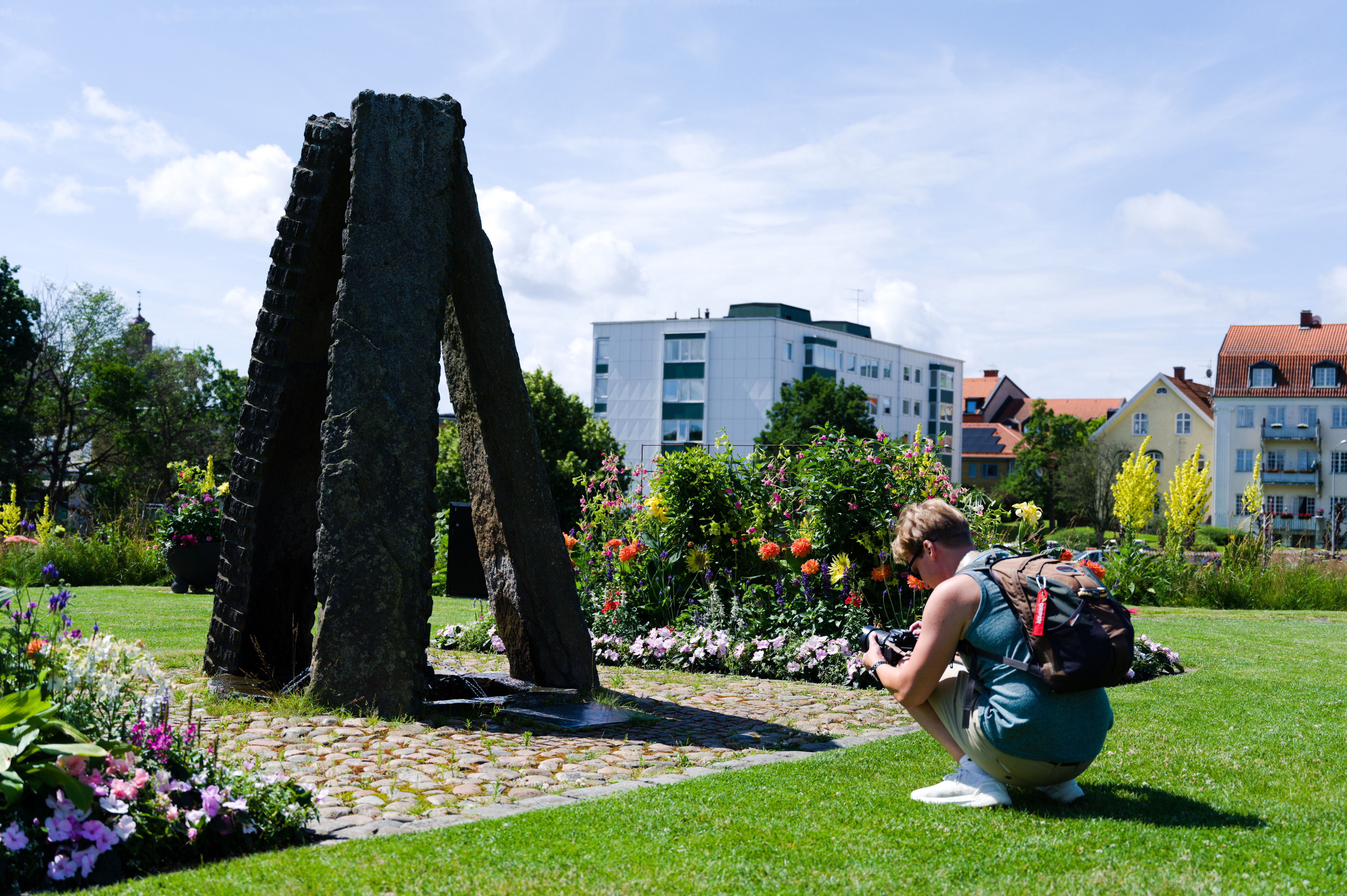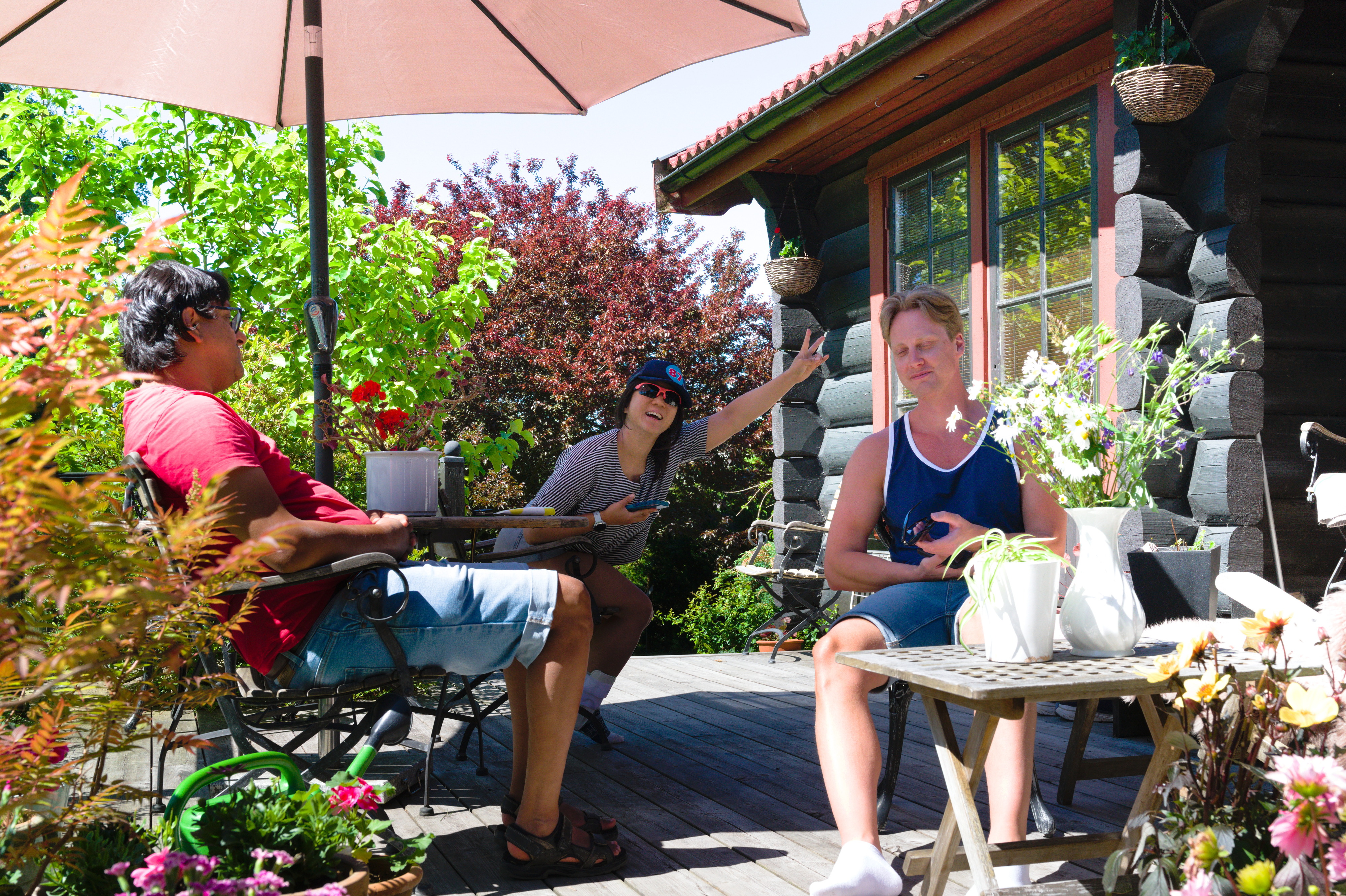 För mammas 70-års dag hyrde vi ett hus i Falkenberg med pool! Stadsvandring med Laurentiiparken med dess rosenbuskar, Badhusparken och Vallarnas friluftsområde med Dag-Ottos utomhusteater avverkades, inklusive räkmacka vid Tullbron.
