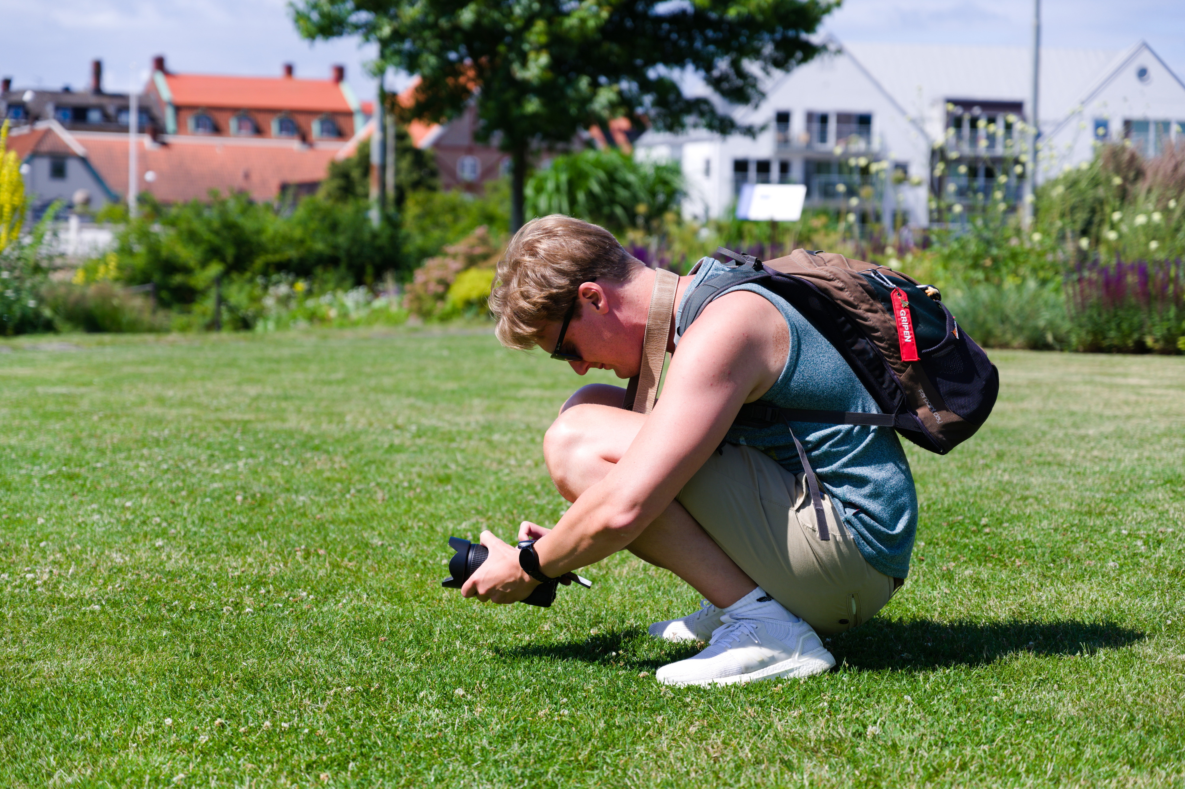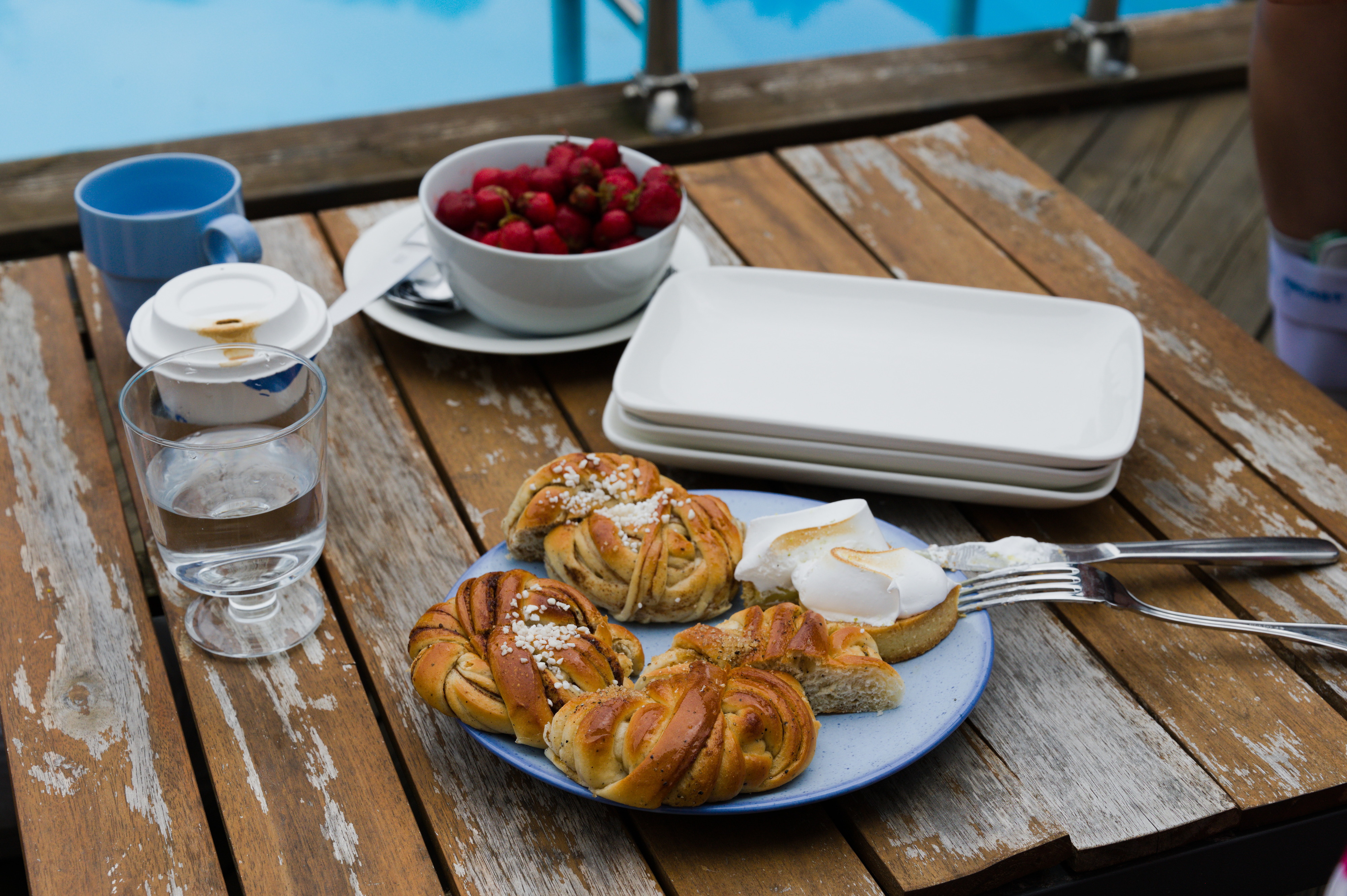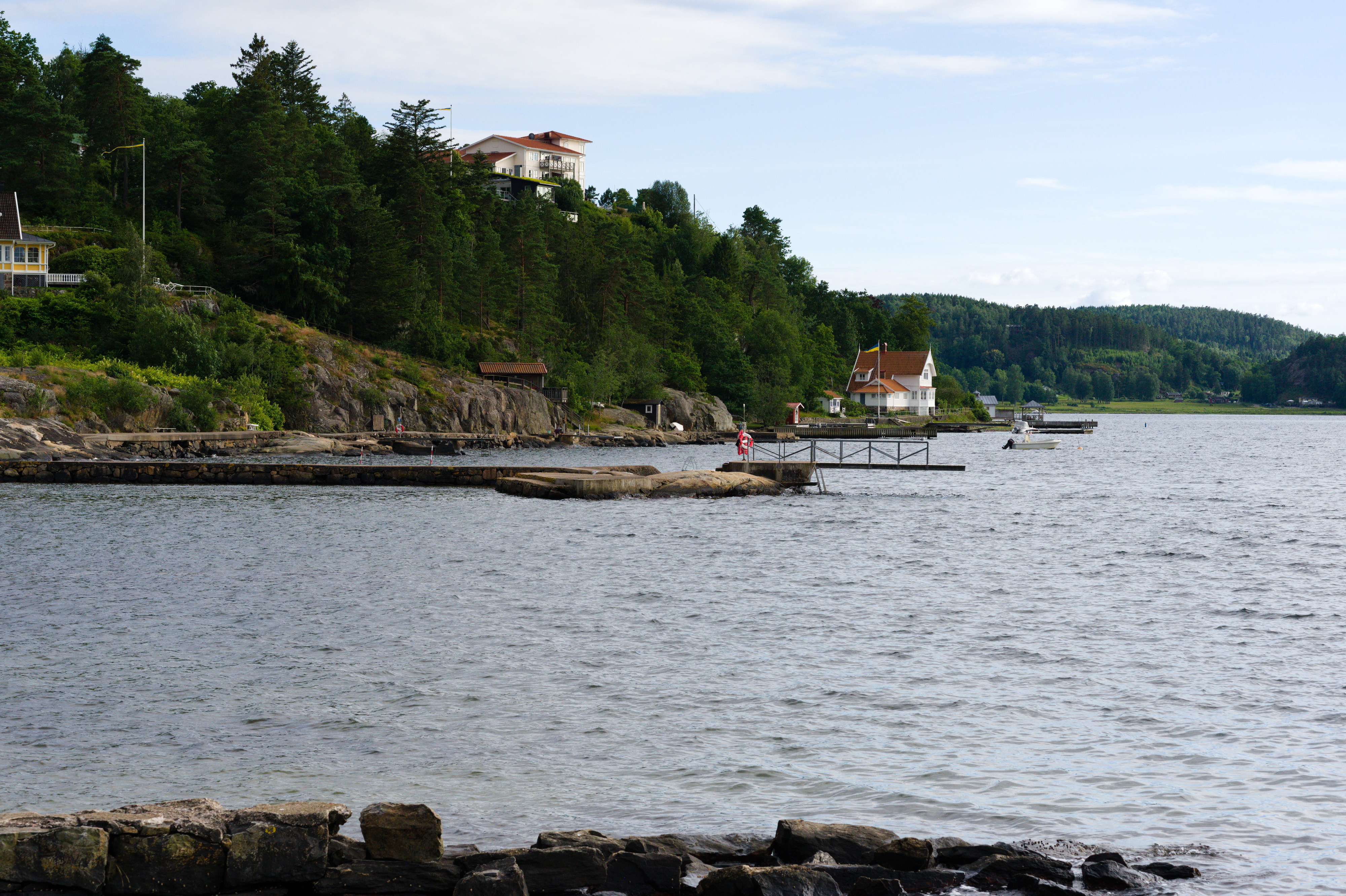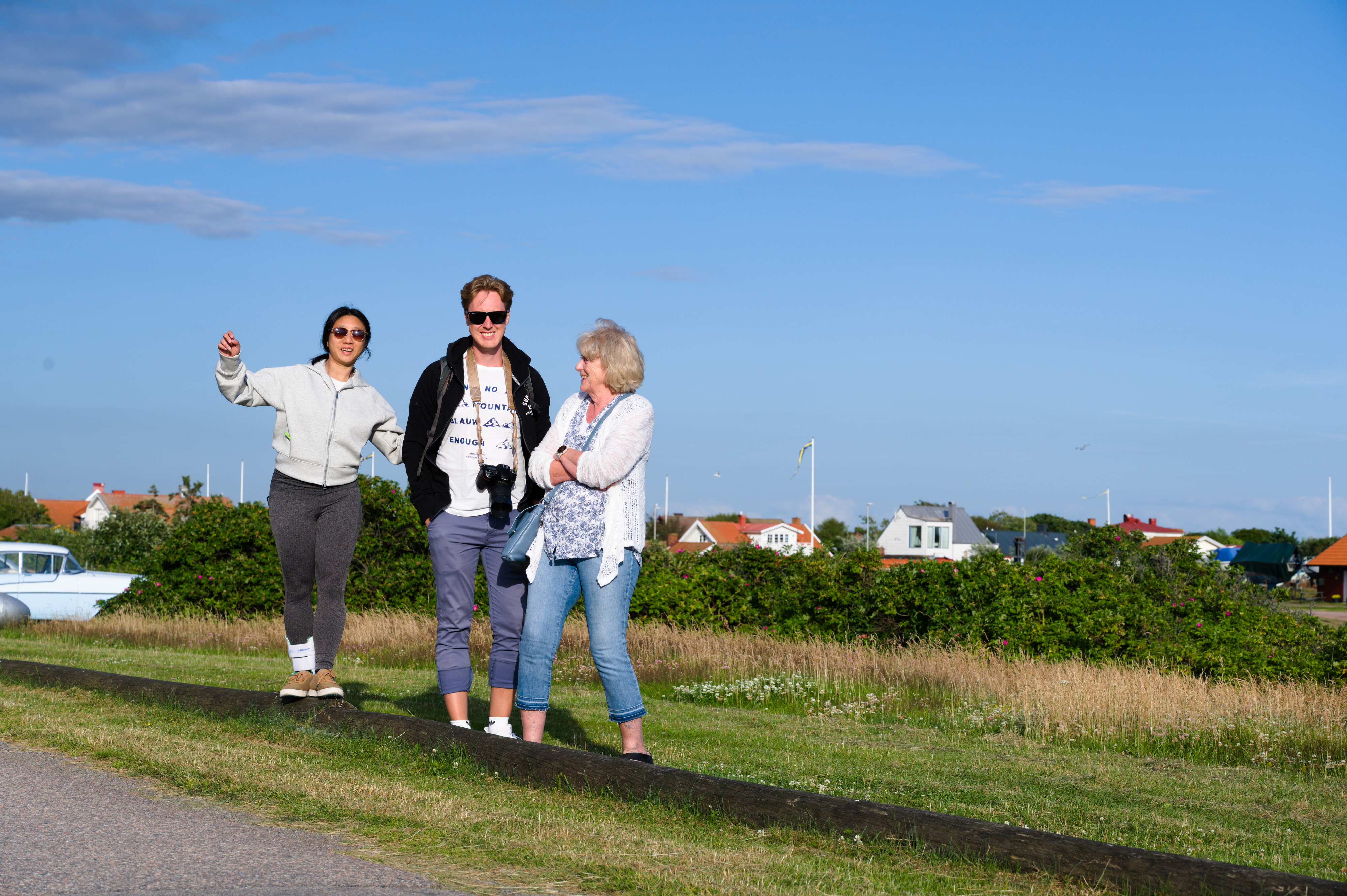 För mammas 70-års dag hyrde vi ett hus i Falkenberg med pool! Stadsvandring med Laurentiiparken med dess rosenbuskar, Badhusparken och Vallarnas friluftsområde med Dag-Ottos utomhusteater avverkades, inklusive räkmacka vid Tullbron.